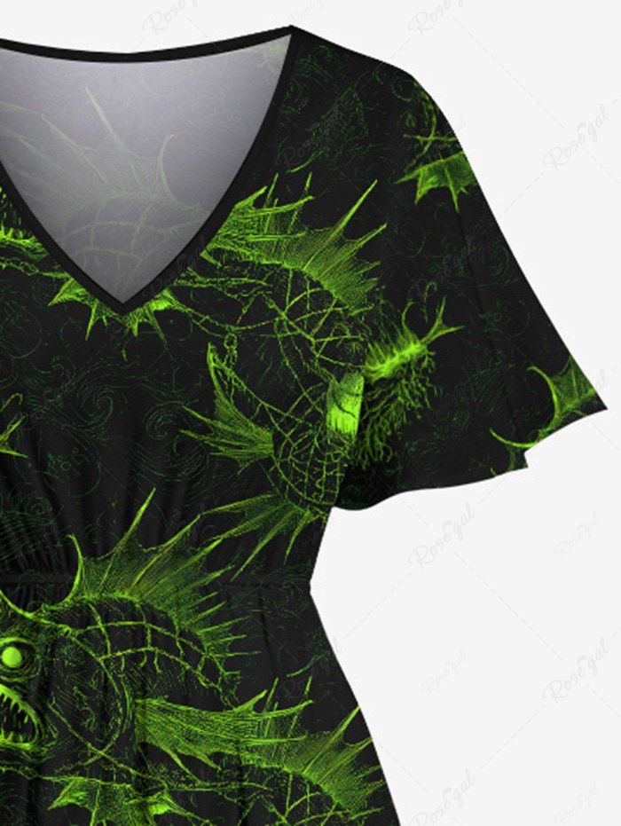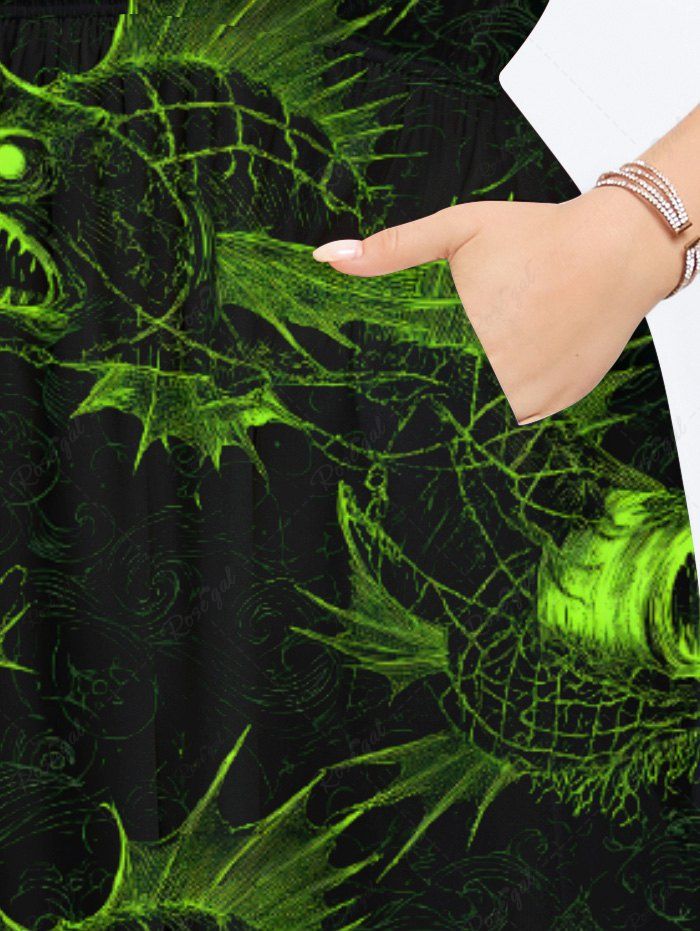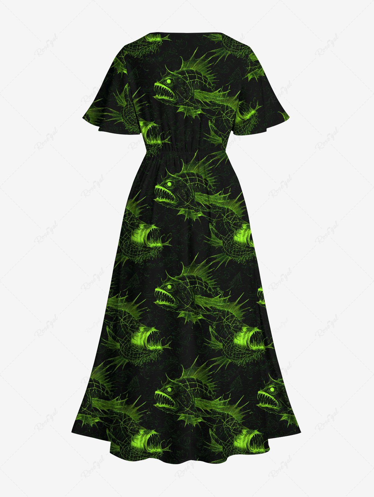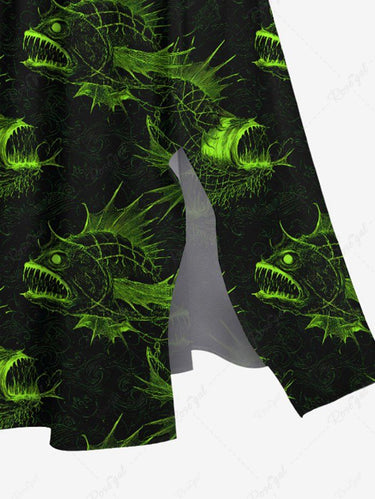 Gothic Plus Size Piranha Fish Print Hawaii Sea Creatures Split Pocket A Line Midi Dress
