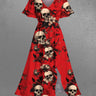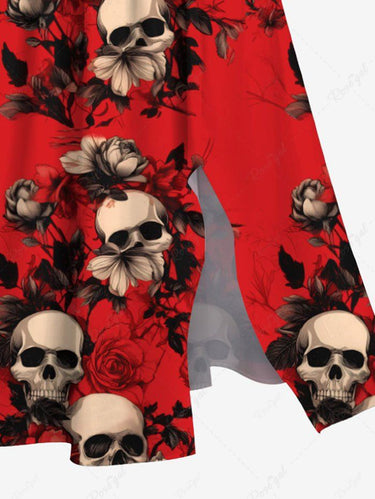 Gothic Plus Size Skull Floral Print Split Pocket A Line Midi Dress