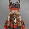 Gothic Plus Size Skull Flower Wreath Print Crisscross Strappy A Line Cami Dress