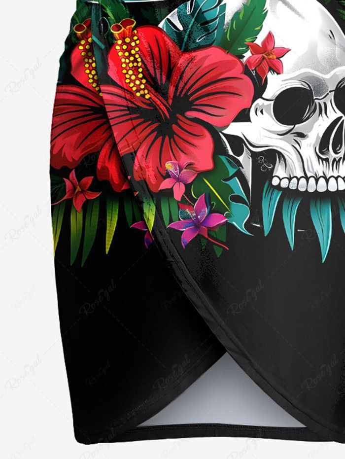 Gothic Plus Size Skull Hibiscus Flower Tropical Leaf Print Hawaii Convertible Beach Cover Up
