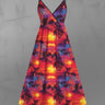 Gothic Plus Size Skulls Coconut Tree Sun Print Surplice Cami Dress