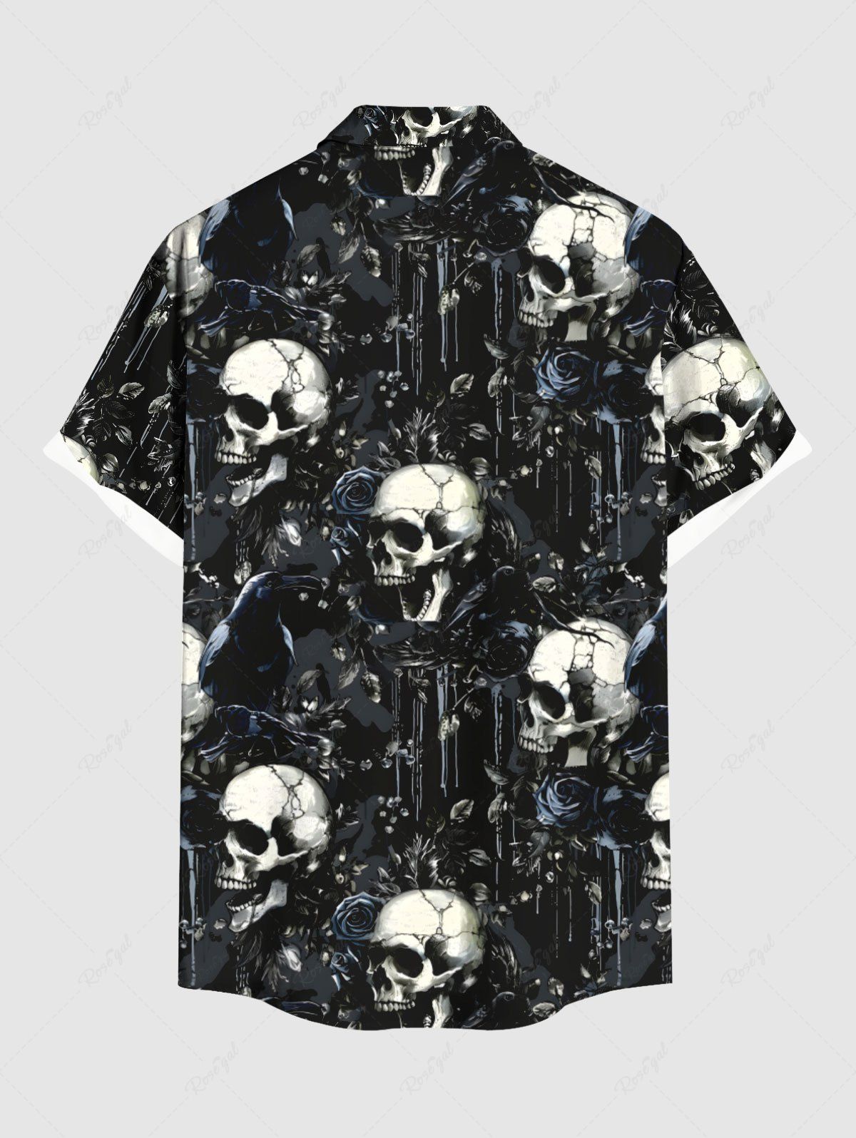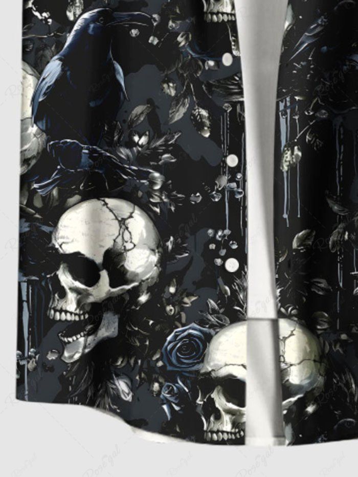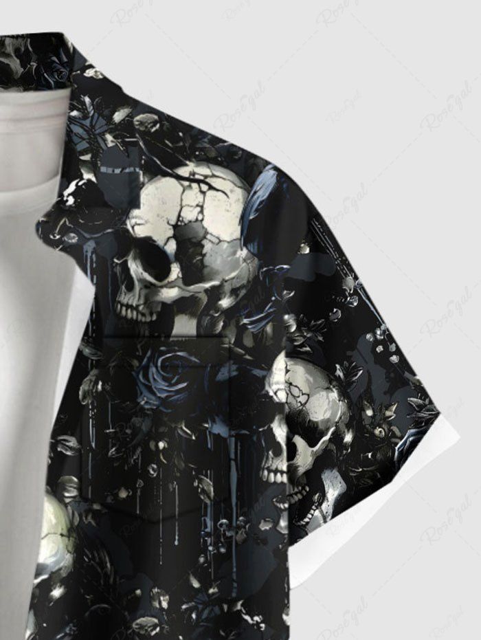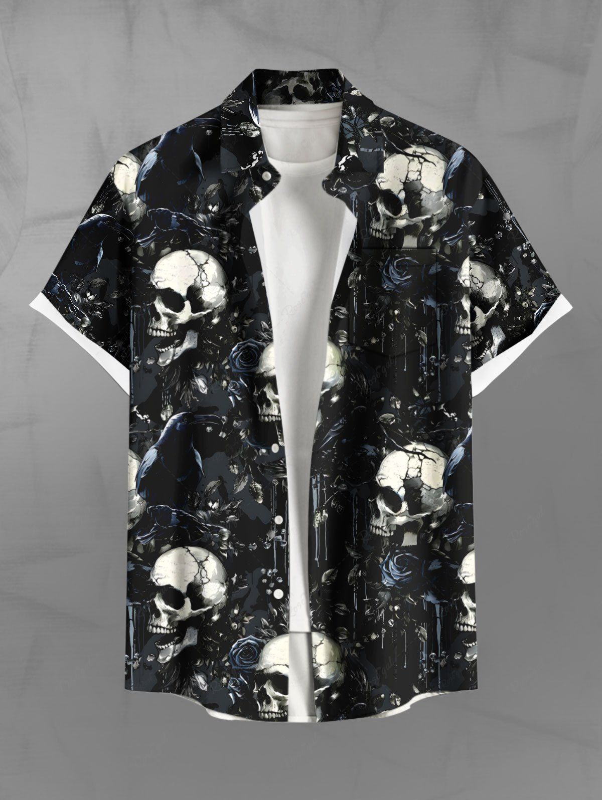 Gothic Plus Size Skulls Rose Flowers Print Buttons Pocket Shirt For Men