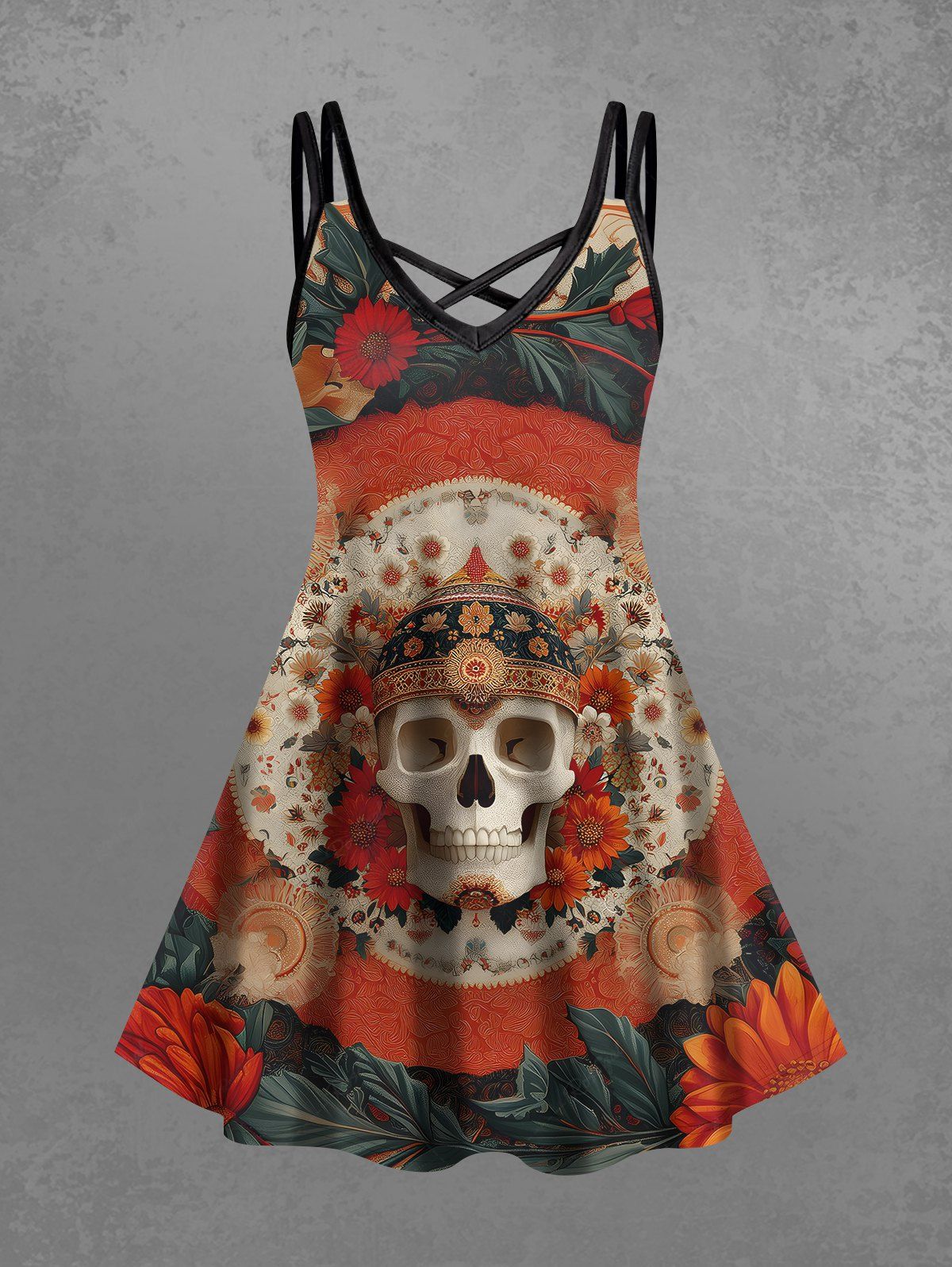 Quick viewGothic Plus Size Skull Flower Wreath Print Crisscross Strappy A Line Cami Dress£23.00£18.00 /Choose options Save 16%