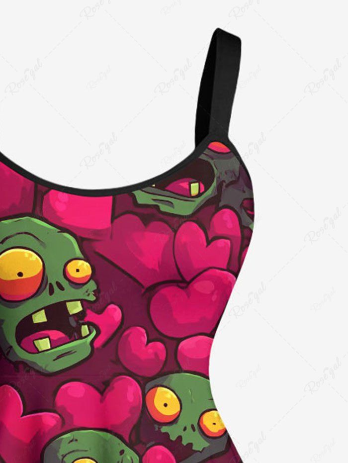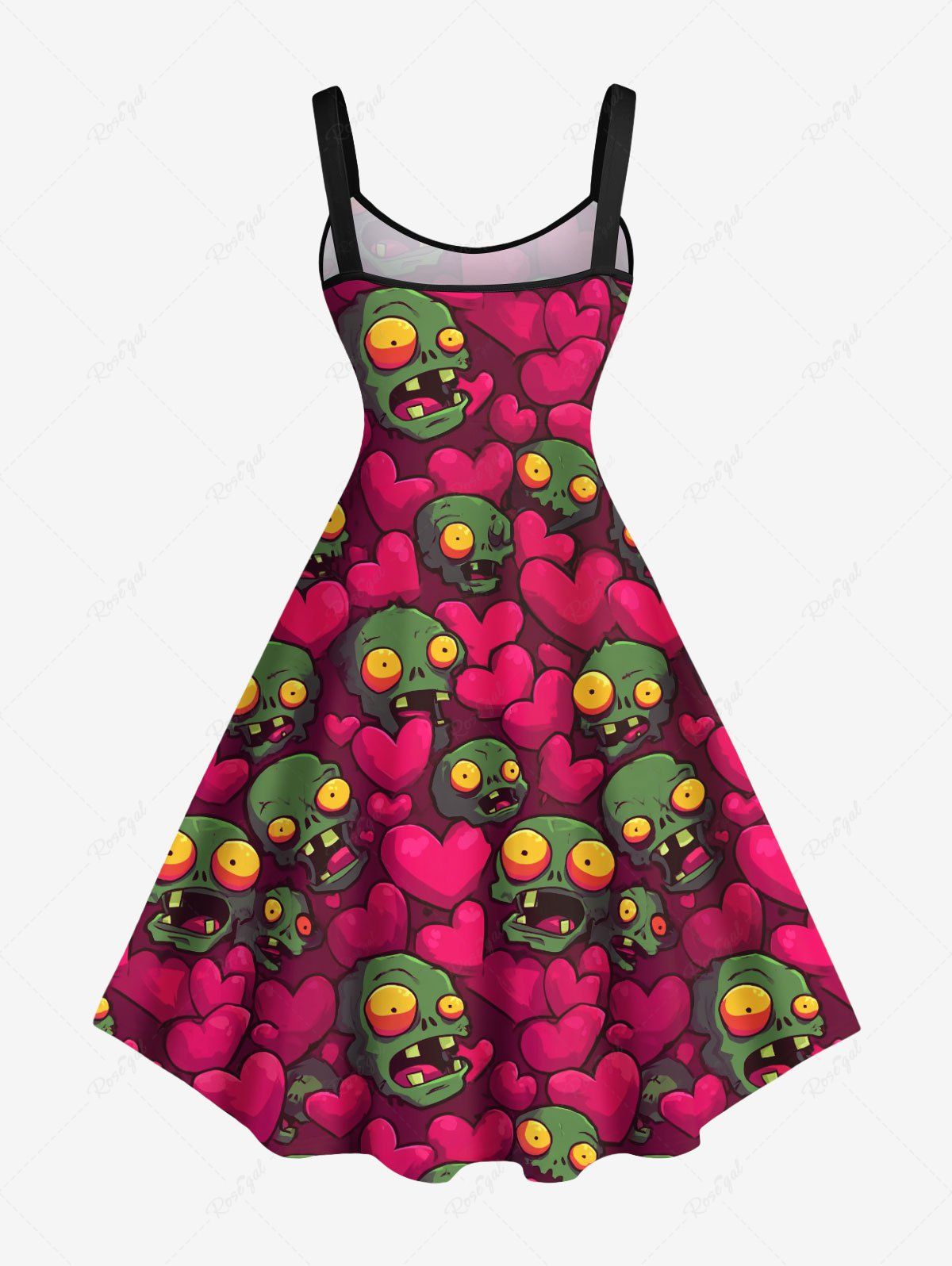 Gothic Plus Size Zombie Skull Heart Print Valentines A Line Dress