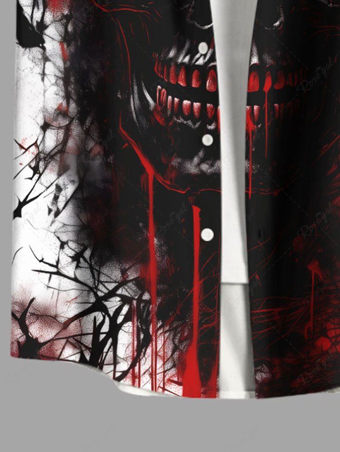 Gothic Plus Size Ink Painting Skull Bloody Print Button Pocket Shirt For Men