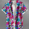 Gothic Plus Size Rose Flower Skull Butterfly Print Ombre Button Pocket Shirt For Men