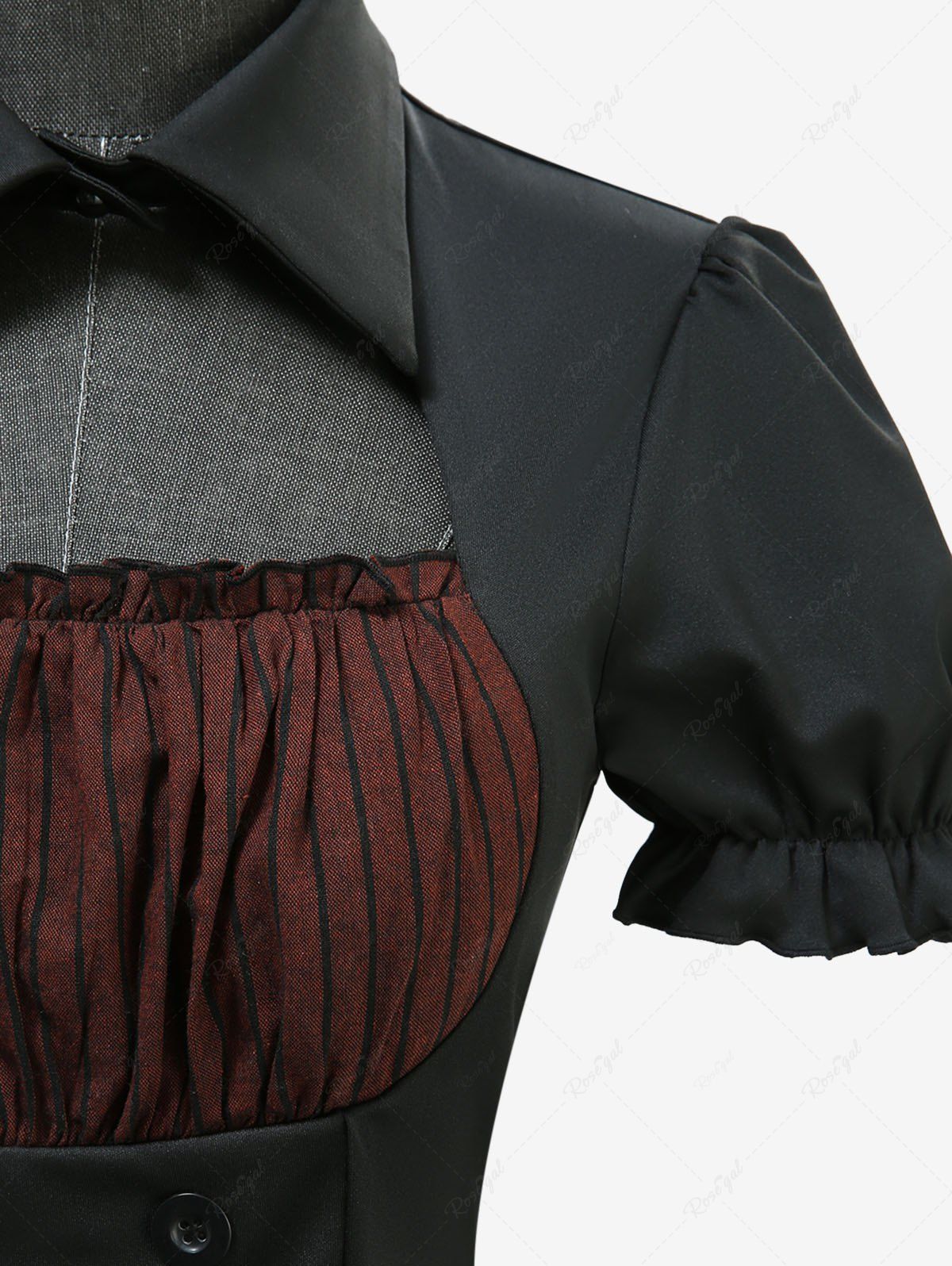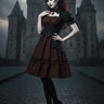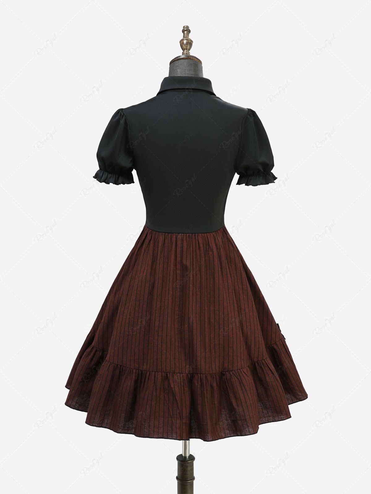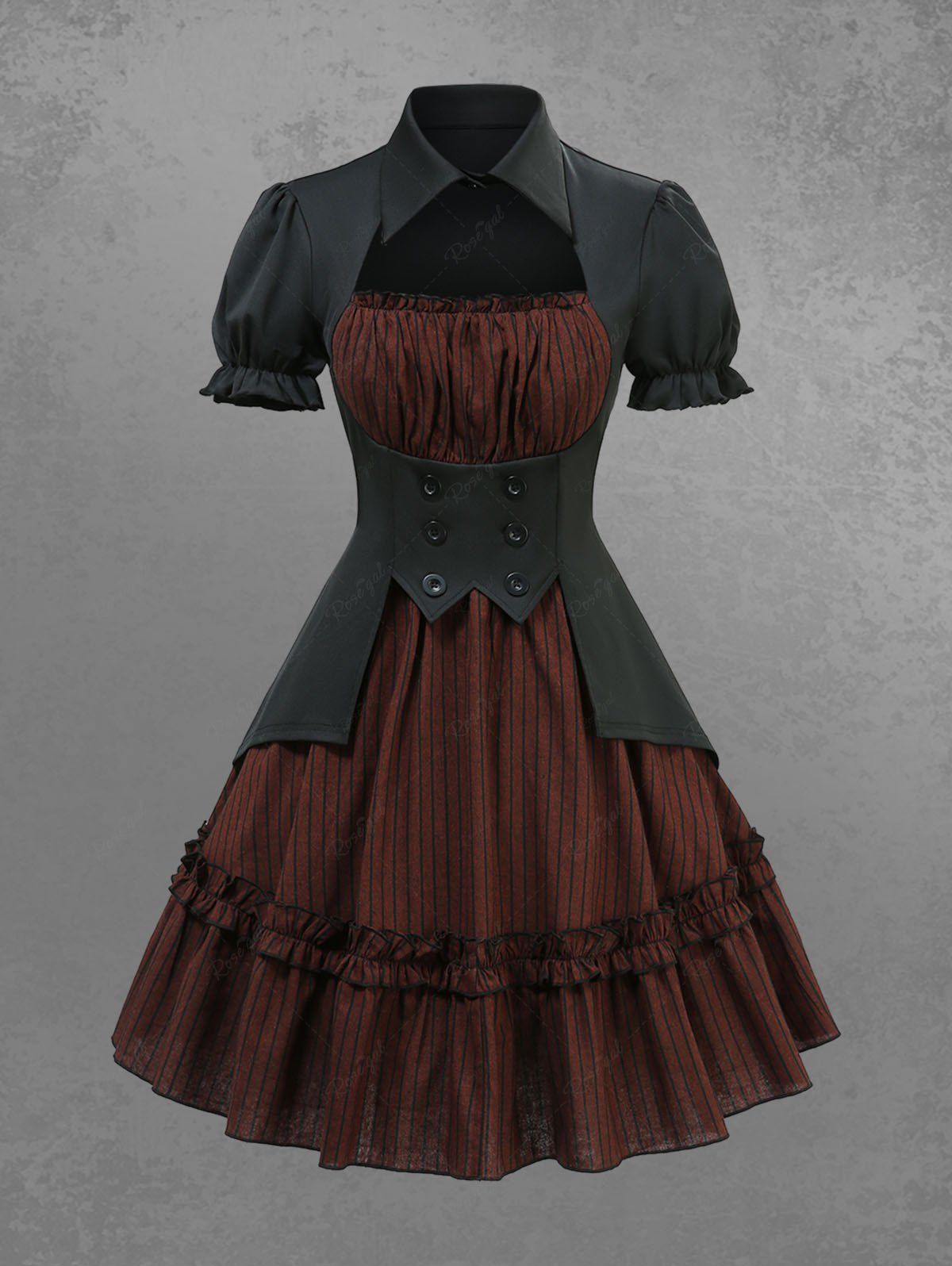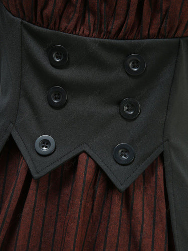 Gothic 100% Cotton Striped Print Cut Out Panel Mock Buttons 2 in 1 A Line Dress