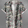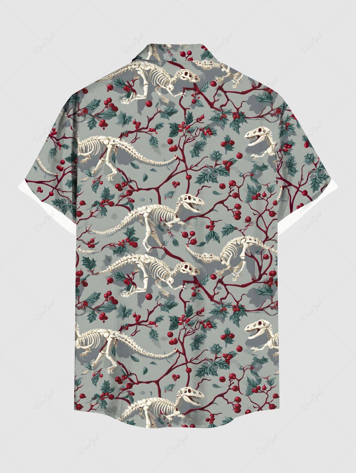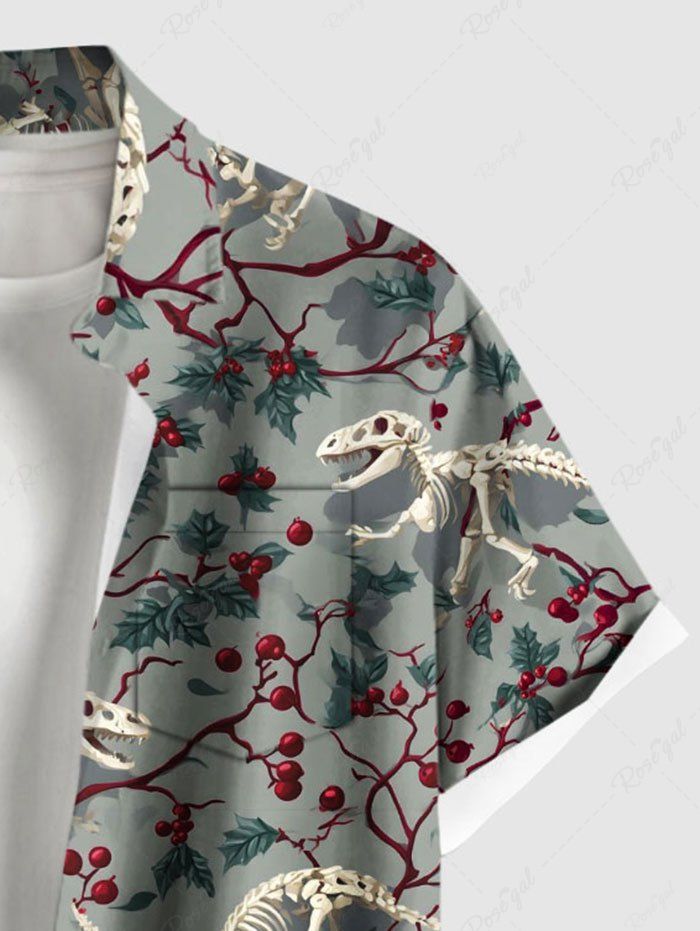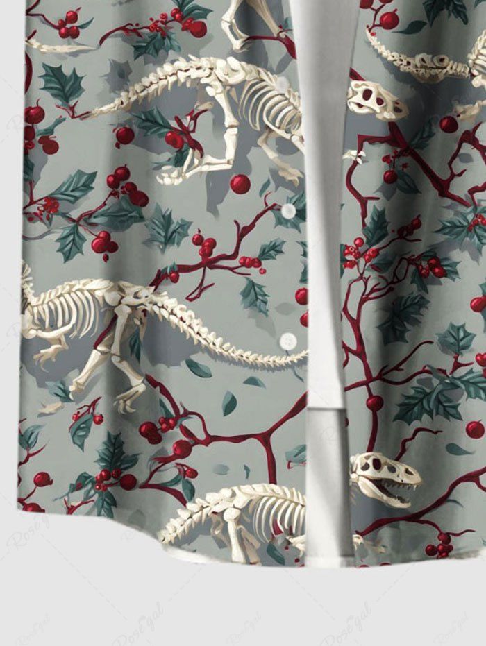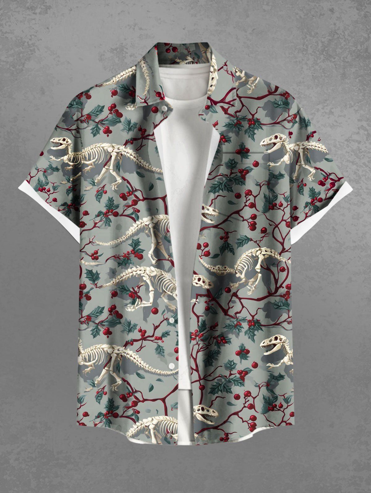 Gothic Plus Size Christmas Holly Branch Leaf Skeleton Dinosaur Print Button Pocket Shirt For Men