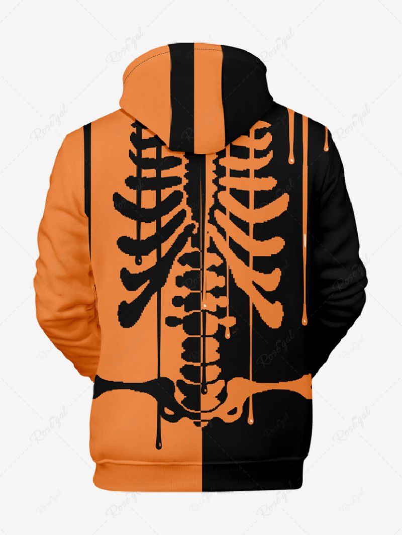 Gothic Plus Size Halloween Two Tone Skeleton Print Drawstring Pockets Hoodie For Men