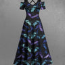 Gothic Plus Size Ombre Bat Print Halloween Costume Crisscross A Line Maxi Dress