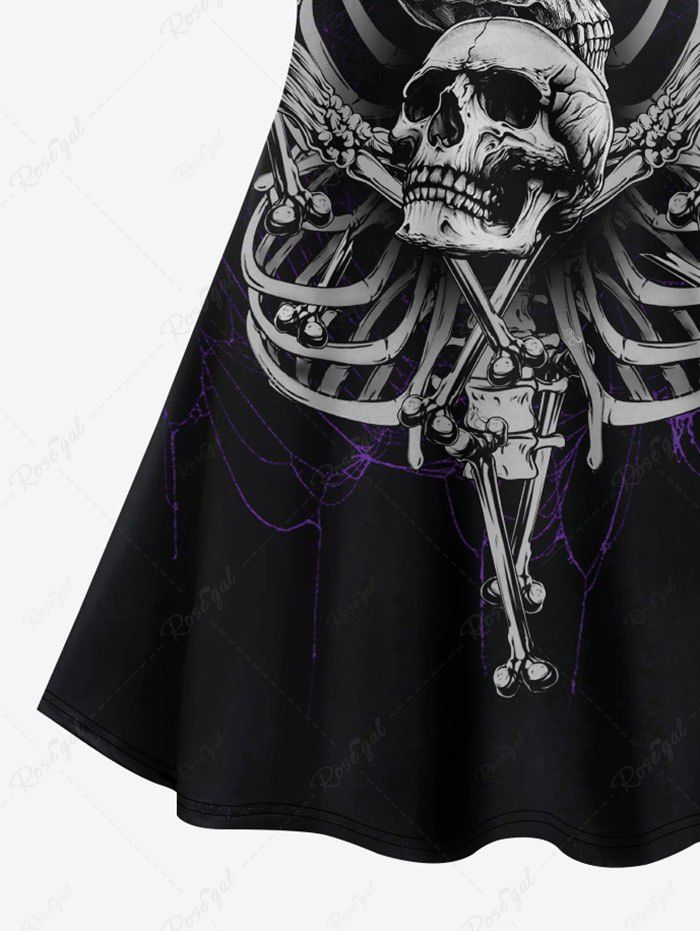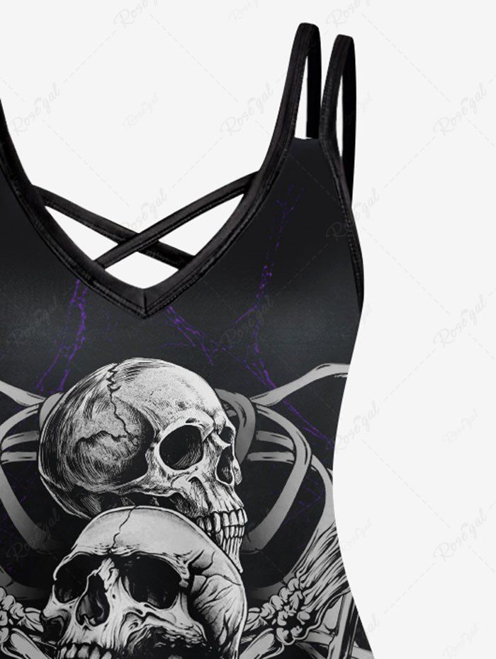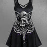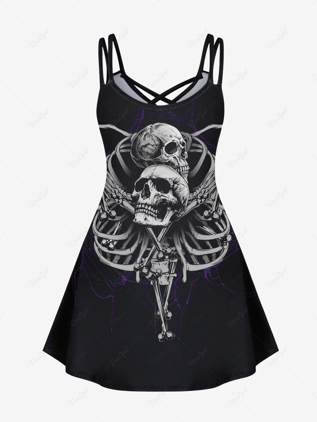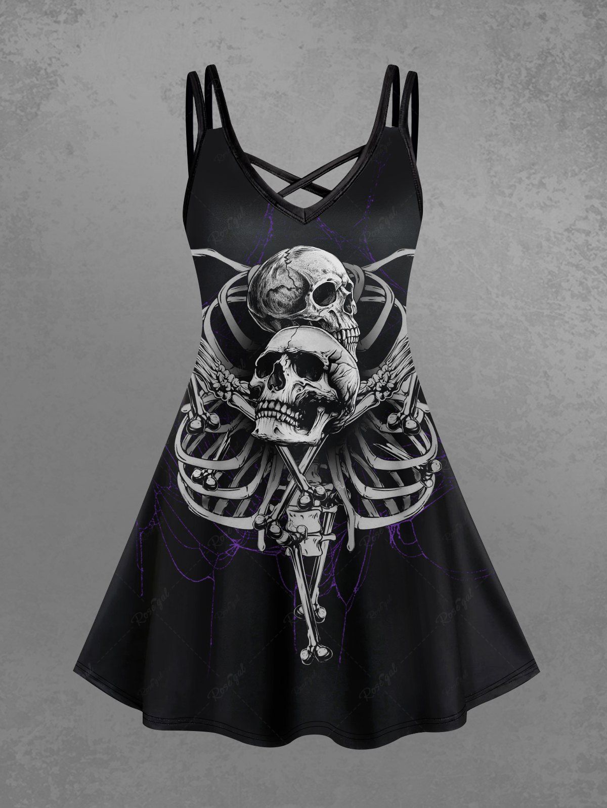 Gothic Plus Size Skeleton Print Crisscross Strappy A Line Cami Dress