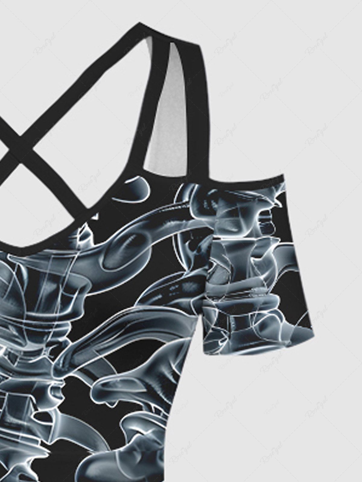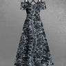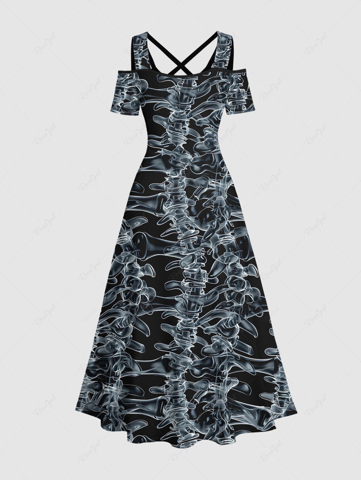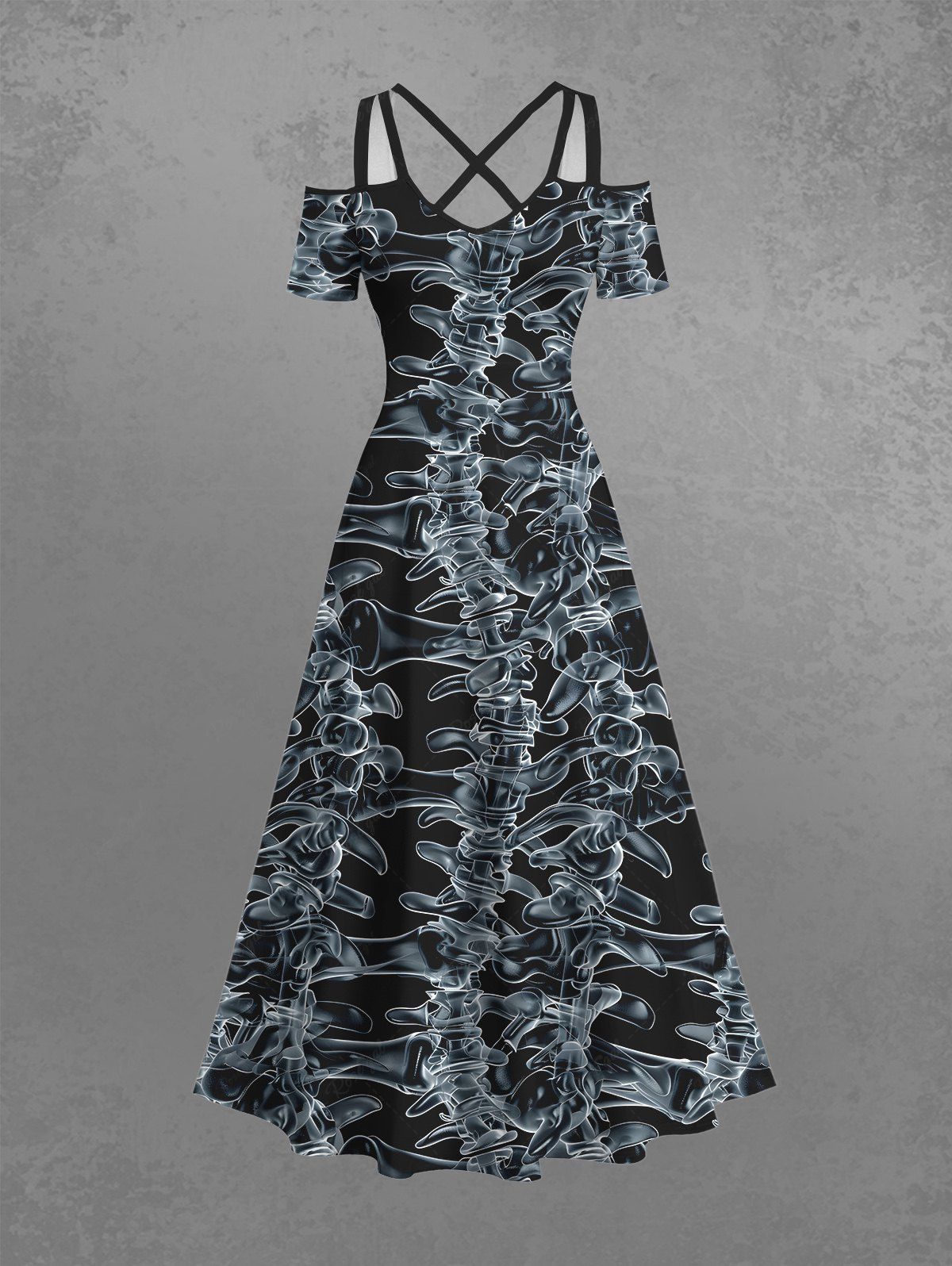 Gothic Plus Size Skeletons Print Cold Shoulder Crisscross Halloween Maxi Dress