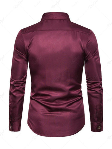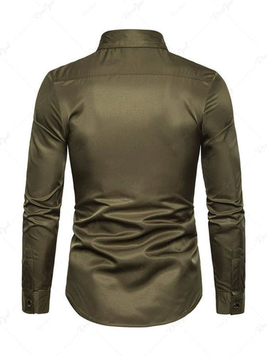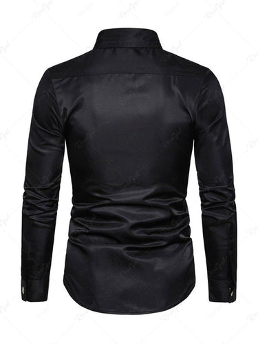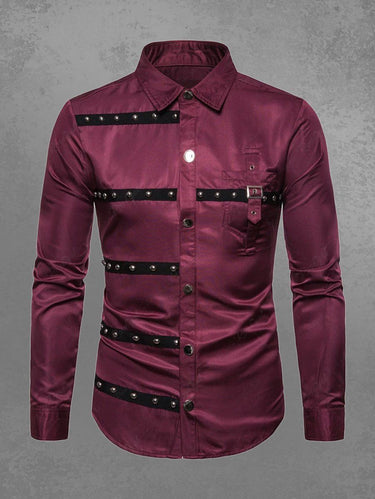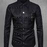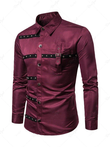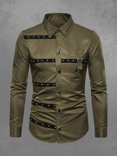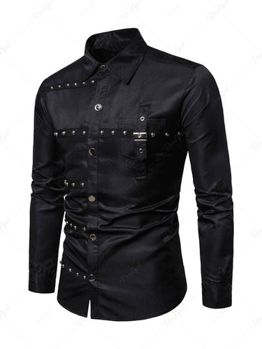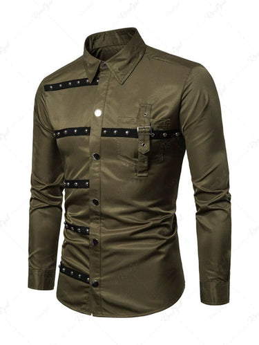 Gothic Turn-down Collar Full Buttons Rivet Straps Buckle Grommet Front Pocket Long Sleeves Shirt For Men