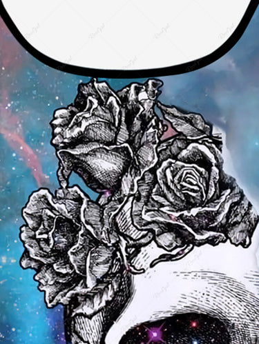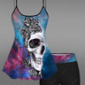 Gothic Plus Size Galaxy Flower Skull Print Boyshorts Tankini Swimsuit