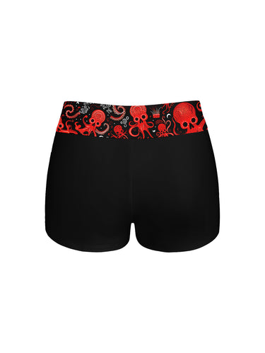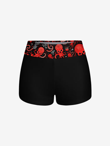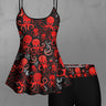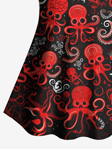Gothic Plus Size Ombre Octopus Heart Print Boyleg Padded Backless Tankini Swimsuit (Adjustable Shoulder Strap)