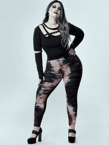 Gothic Plus Size Tie Dye Ripped Ruched Pants