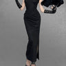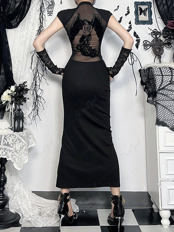 Gothic New Chinese Style Split Sheer Back Angel Graphic Bodycon Sexy Dress