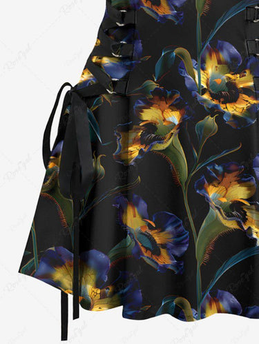 Gothic Ombre Flower Print Lace Up A Line Tank Dress