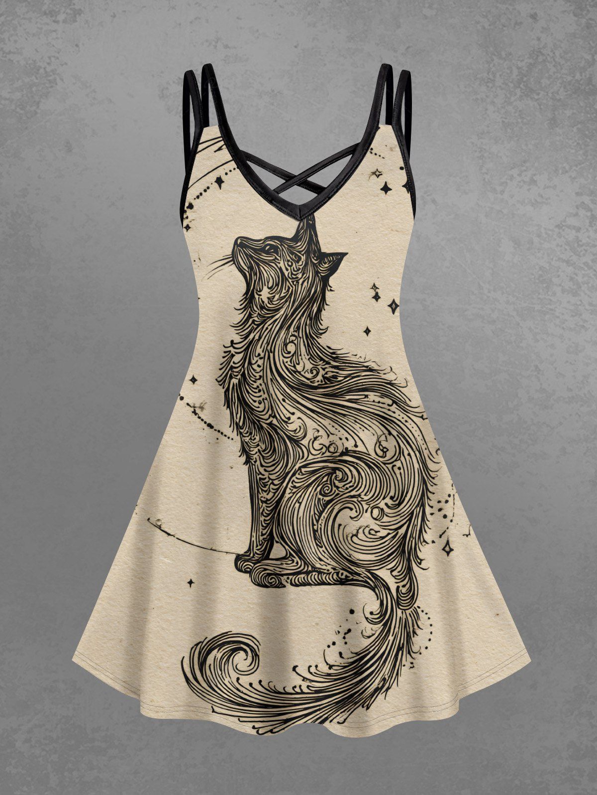 Gothic Plus Size Cat Star Print Crisscross Cami Dress