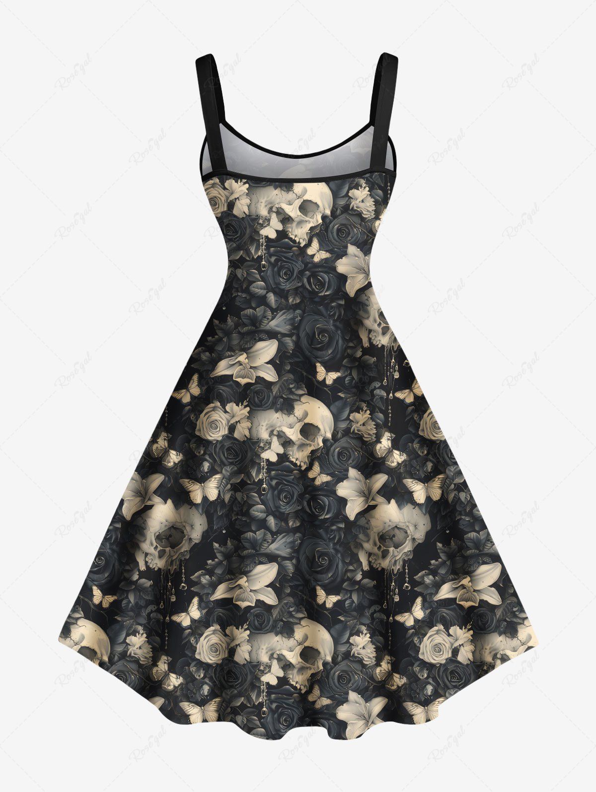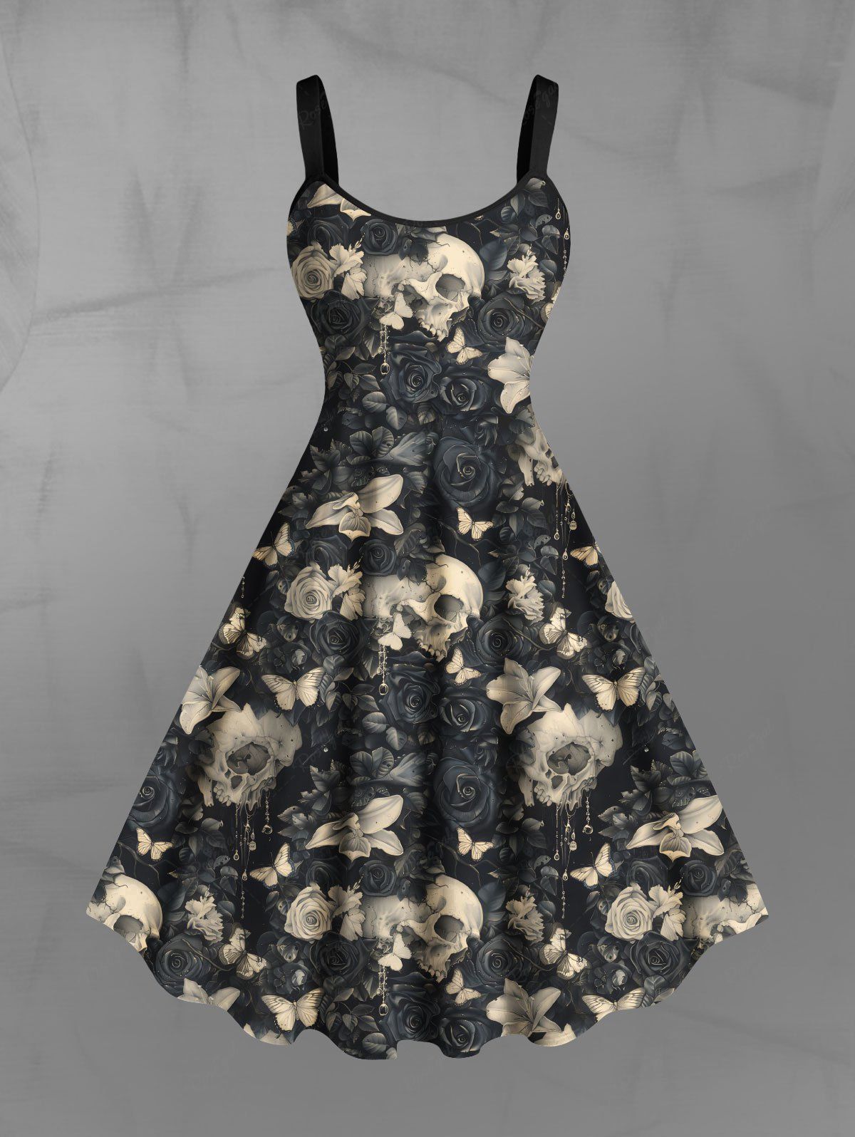 Gothic Plus Size Skull Flower Butterfly Print A Line Tank Dress