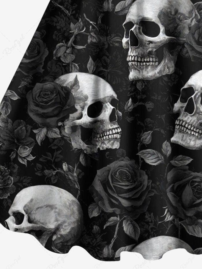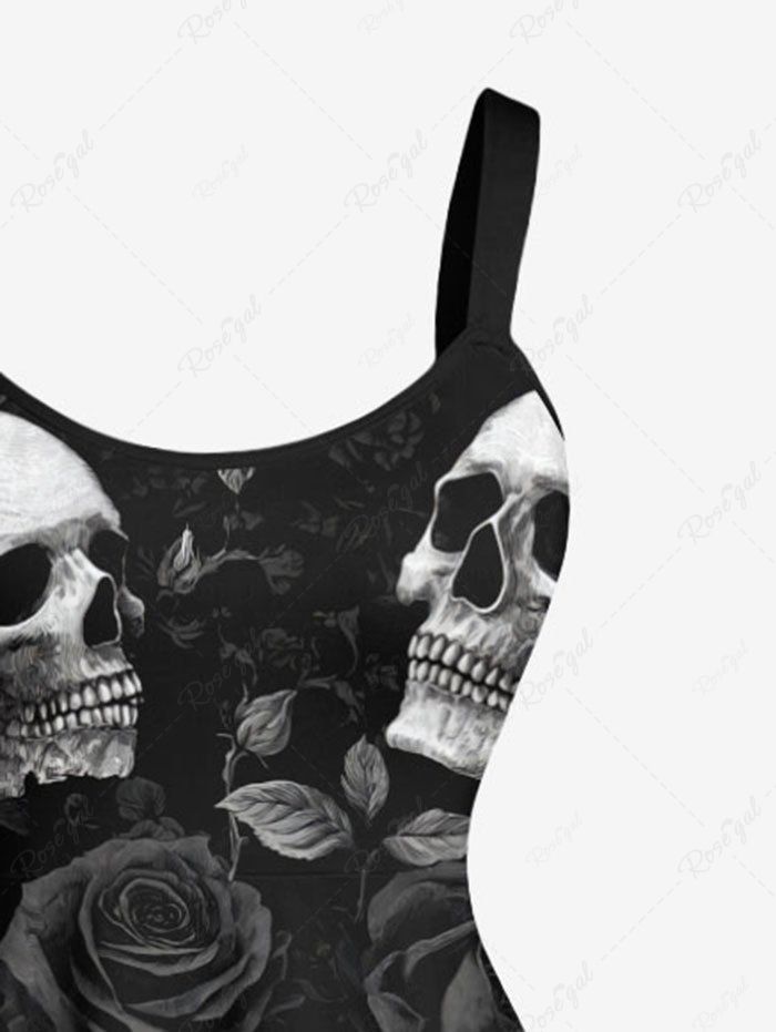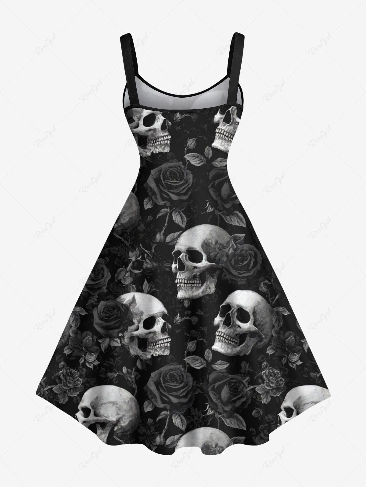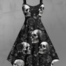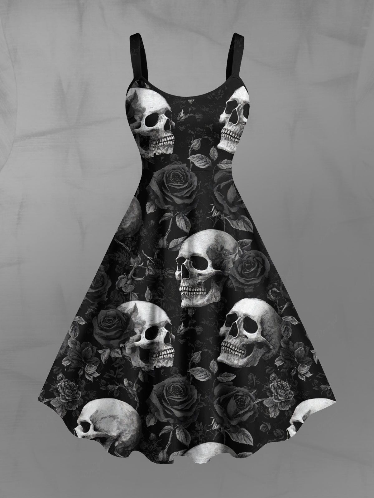 Gothic Plus Size Skull Rose Flower Print A Line Tank Dress