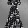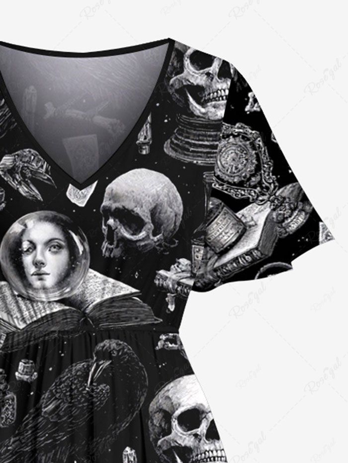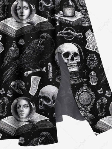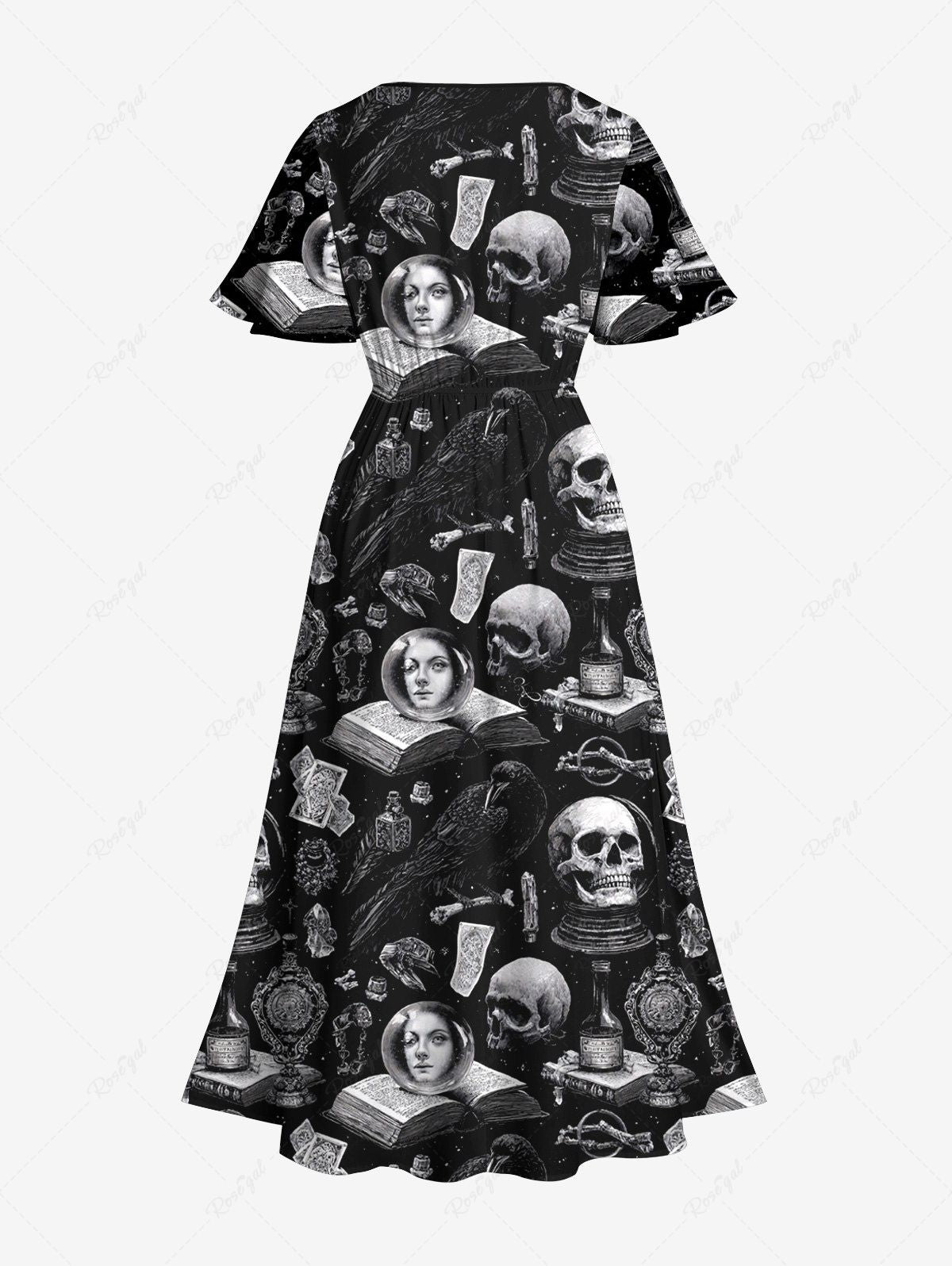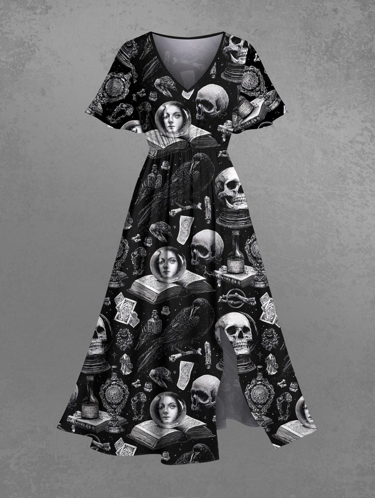 Gothic Plus Size Skulls Books Dollar Print Split Midi Dress