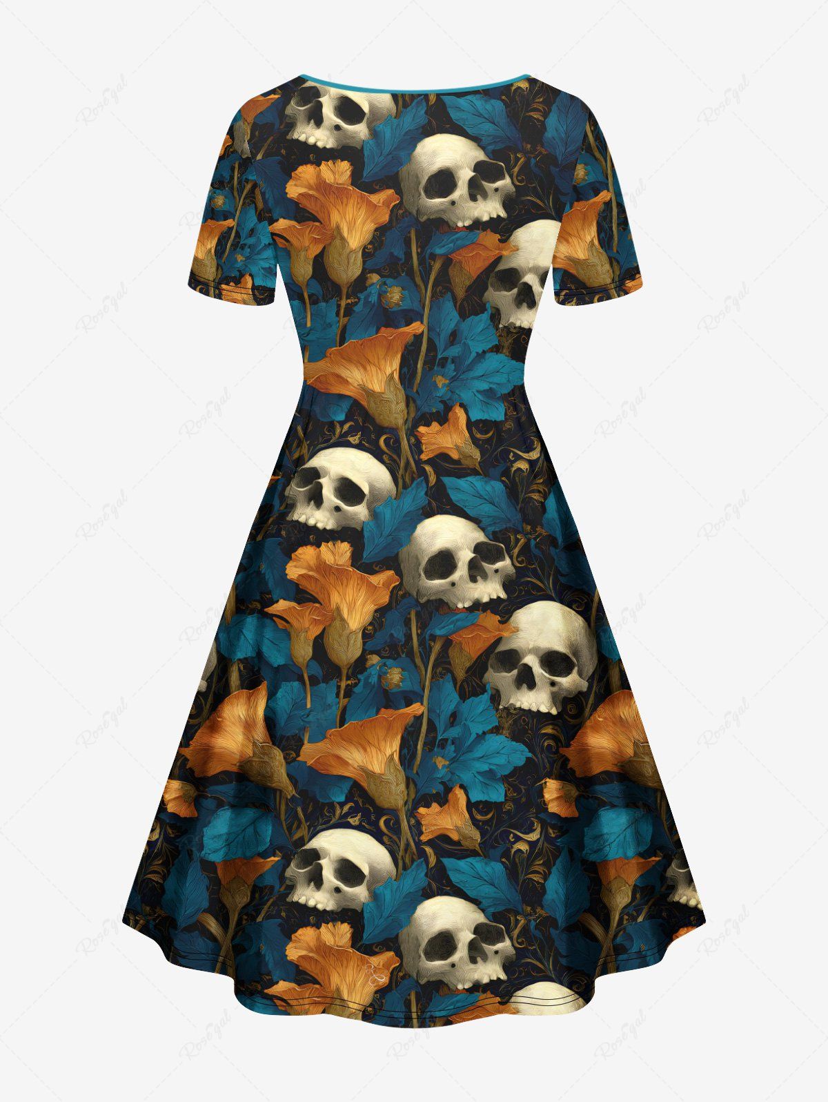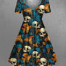 Gothic Plus Size Skull Flower Print Cinched A Line Dress