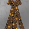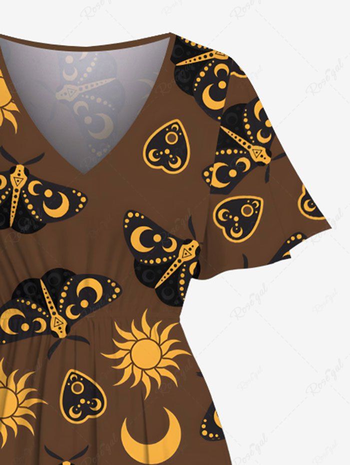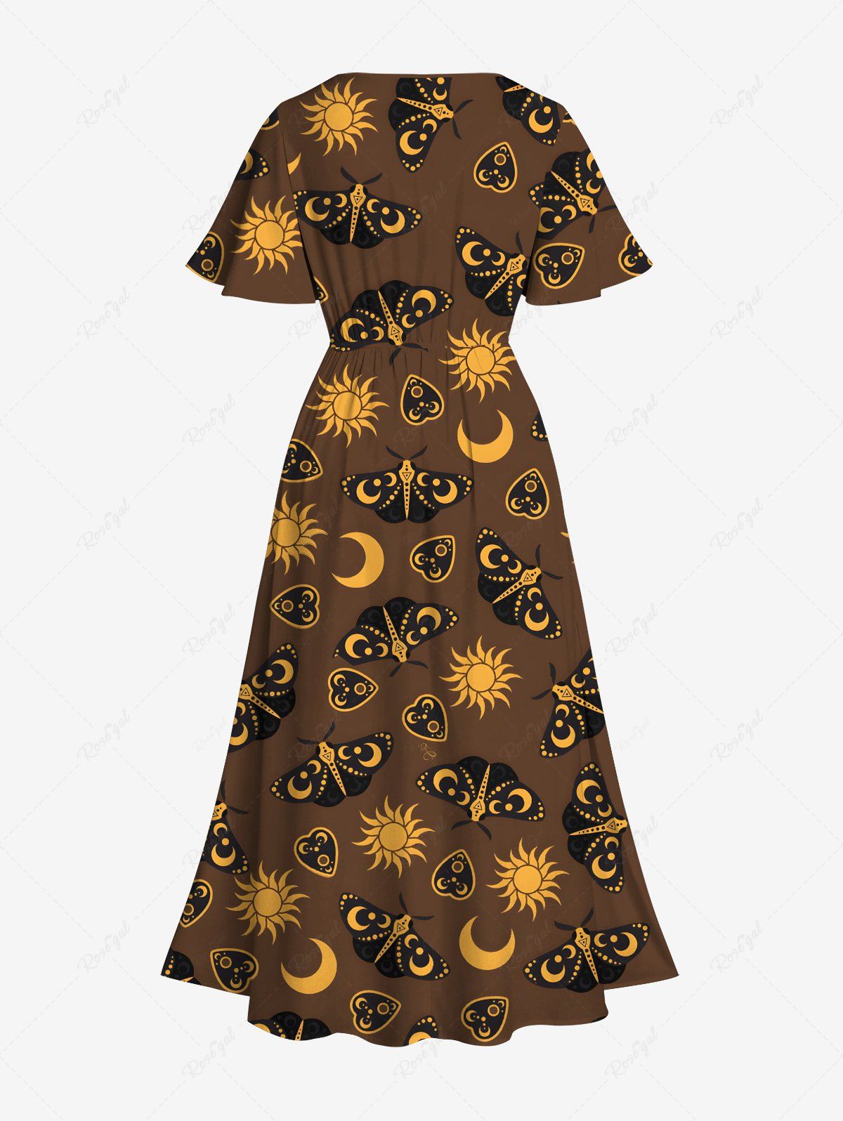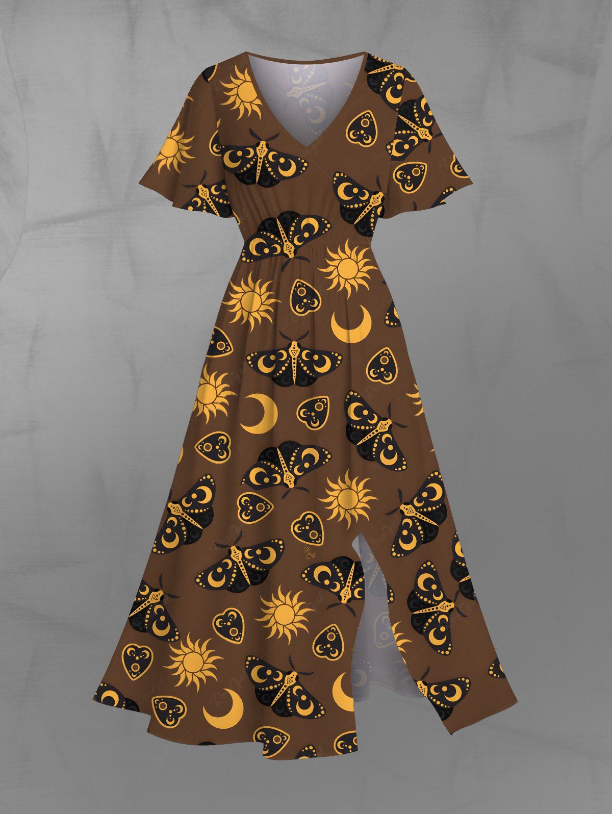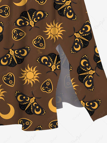 Gothic Plus Size Sun Moon Heart Butterfly Print Split Pocket A Line Midi Dress
