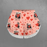 Gothic Plus Size Skeleton Lovers Heart Print Valentines Lace Trim Pajama Shorts