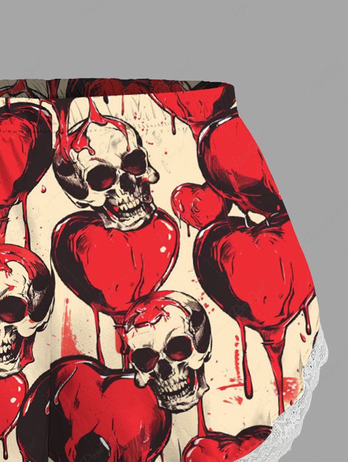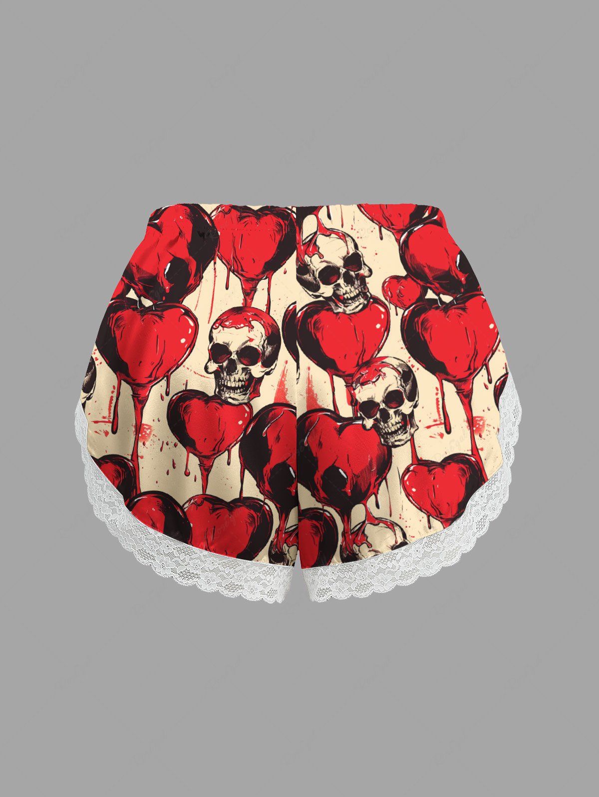 Gothic Plus Size Skull Heart Print Lace Trim Pajama Shorts