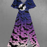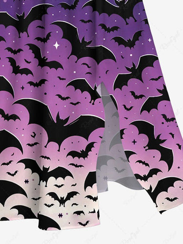 Gothic Plus Size Bat Moon Ombre Galaxy Print Split Pocket A Line Midi Dress