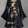 Gothic Plus Size Floral Butterfly Moon Print Flare Sleeves A Line Dress