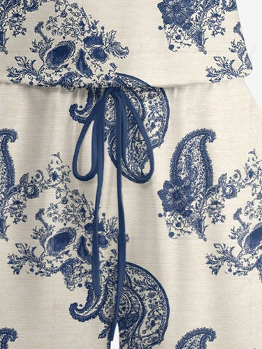 Gothic Plus Size Skull Paisley Leaf Flower Print Drawstring Pocket Romper