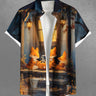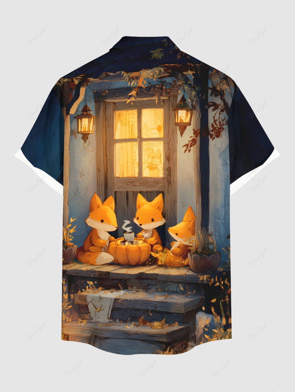 Gothic Plus Size Halloween Pumpkin Fox Lantern Print Buttons Pocket Shirt For Men