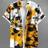 Gothic Plus Size Ink Painting Splatter Skull Sunflower Print Button Pocket Shirt For Men