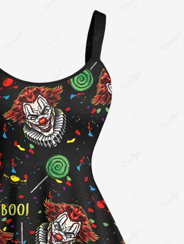 Gothic Plus Size Clown Lollipop Candy Letters Print A Line Tank Dress