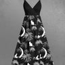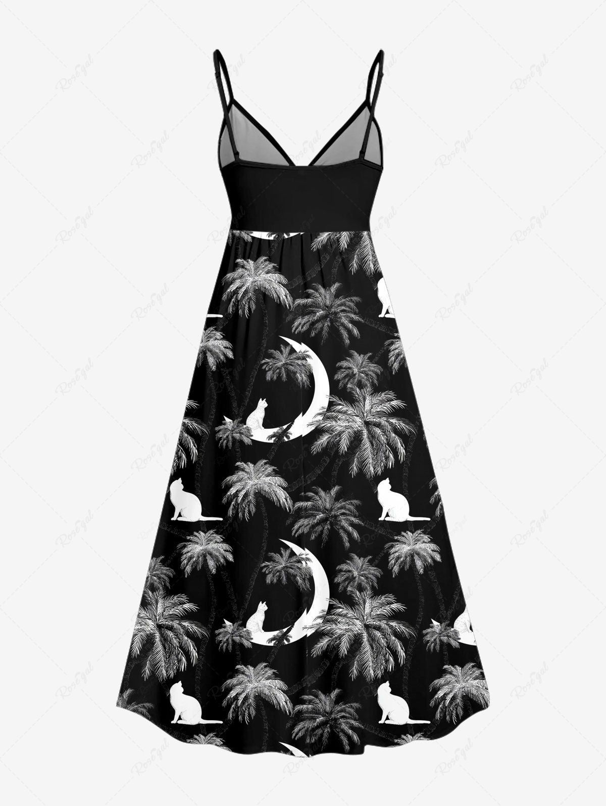 Gothic Plus Size Coconut Tree Moon Cat Print Surplice A Line Cami Dress