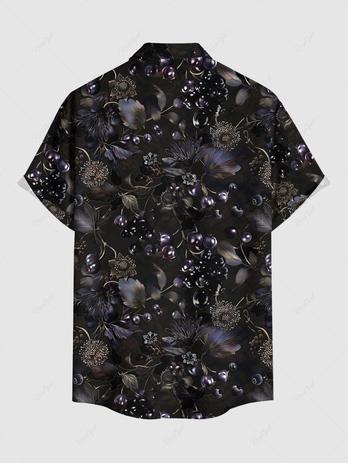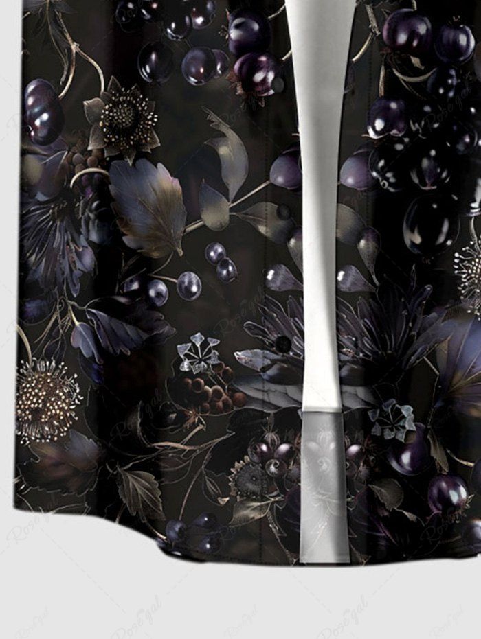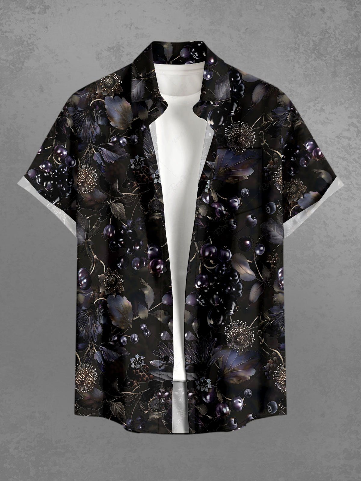 Gothic Plus Size Flower Leaf Fruit Print Button Pocket Shirt For Men