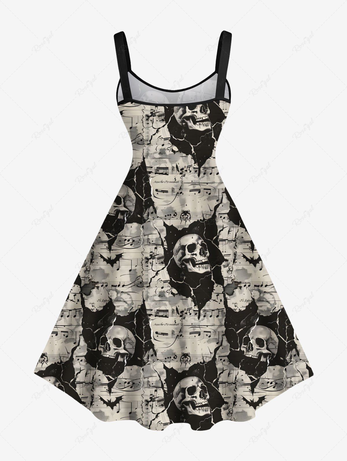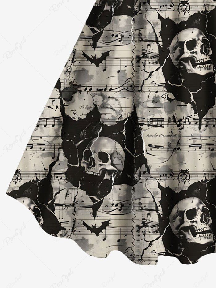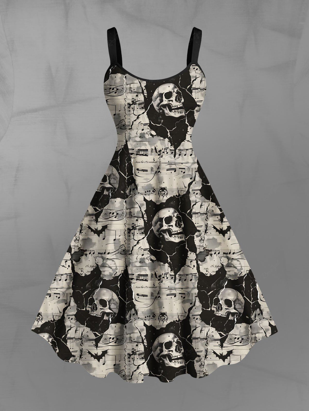 Gothic Plus Size Skull Music Symbol Print A Line Dress