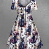 Gothic Cat Skulls Rose Flower Leaf Print Halloween Costume Cinched A Line Dress