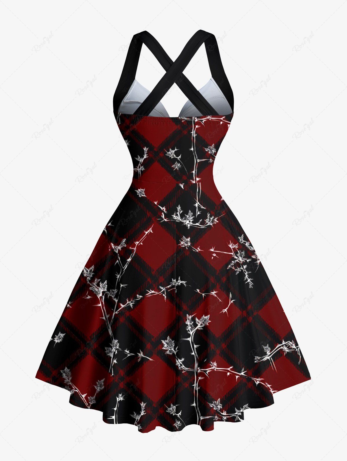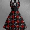 Gothic Christmas Plaid Branch Print Crisscross Strappy Halter A Line Dress
