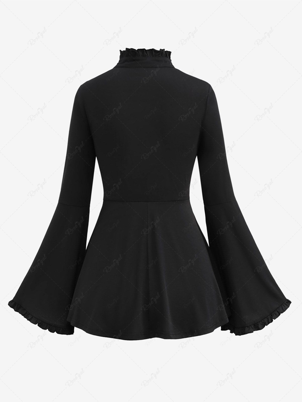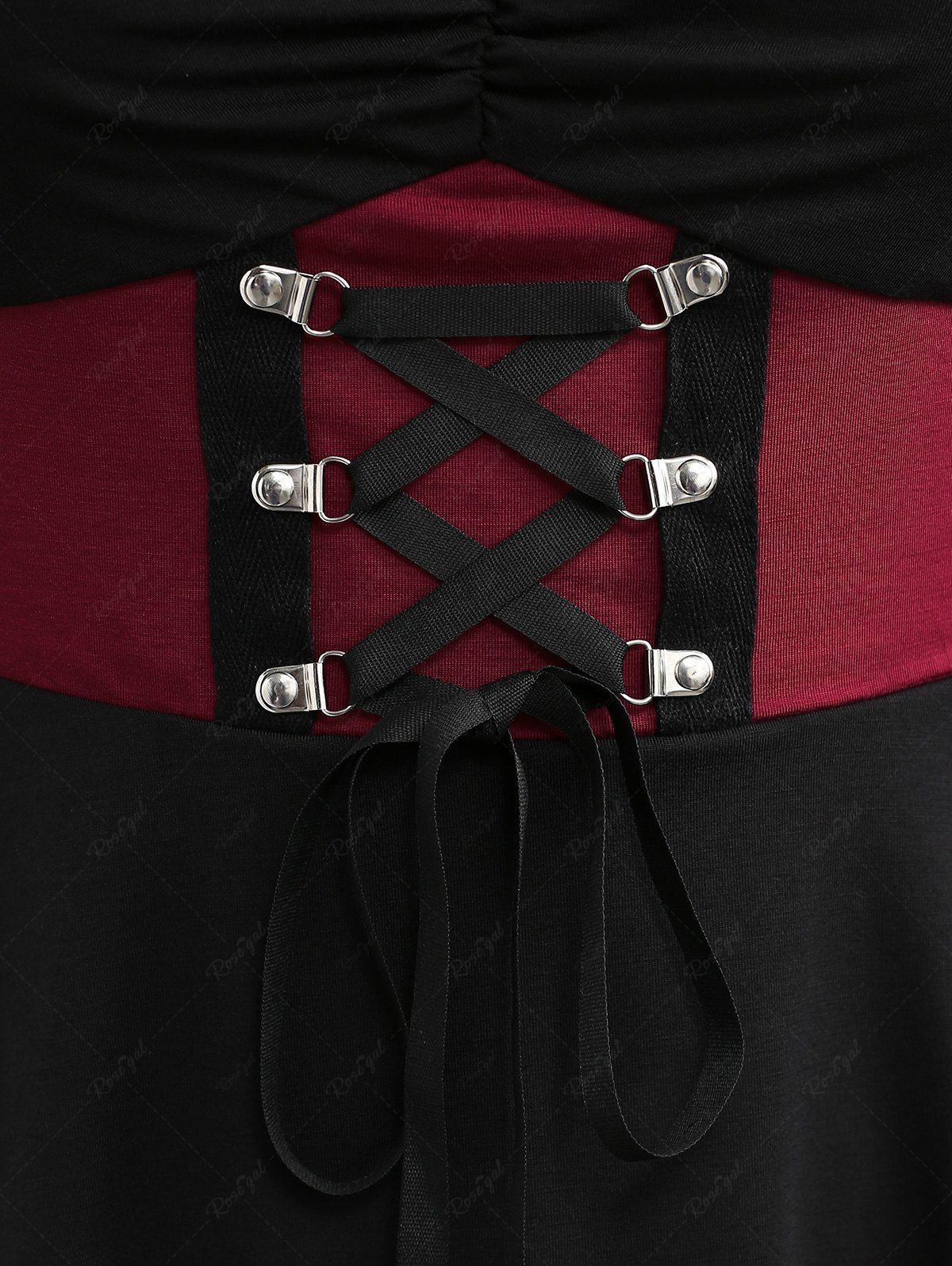Gothic Plus Size Floral Lace Panel Lace Up Ruched Keyhole Flare Sleeves Halloween Asymmetric Corset T-shirt