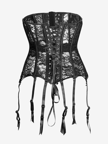 Gothic Plus Size Lace Hook and Eye Gartered Boning Corset