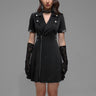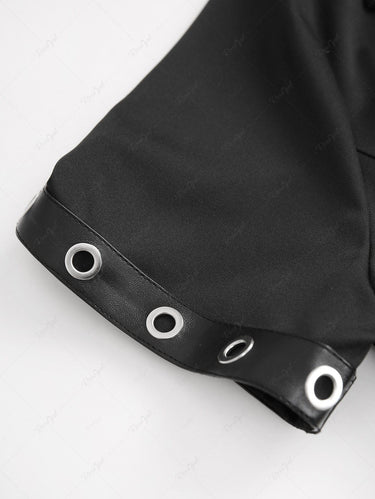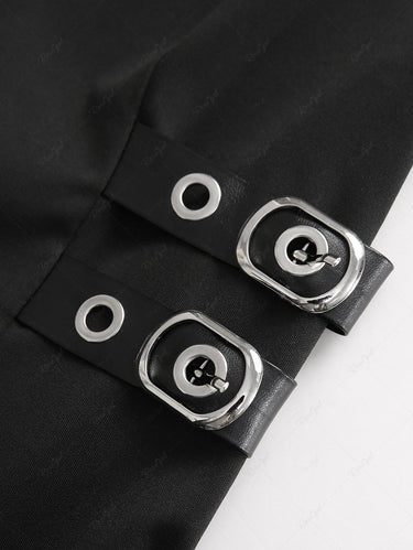 Gothic Lapel Collar Full Zipper PU Strap Grommet Buckle Solid A Line Dress