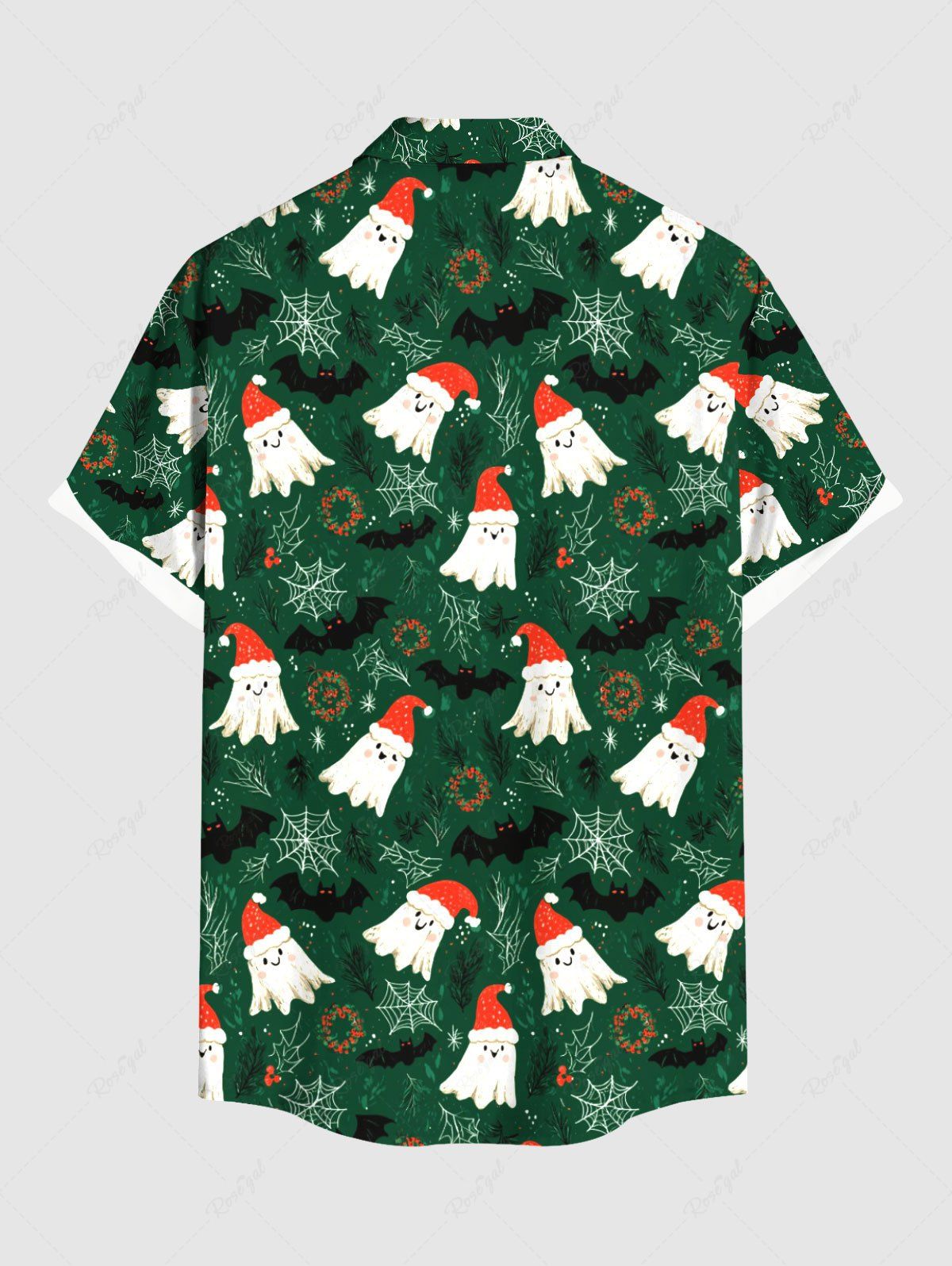 Gothic Plus Size Christmas Hat Ghost Spider Web Print Button Pocket Shirt For Men