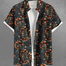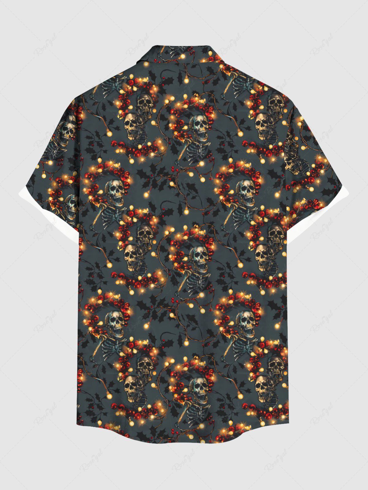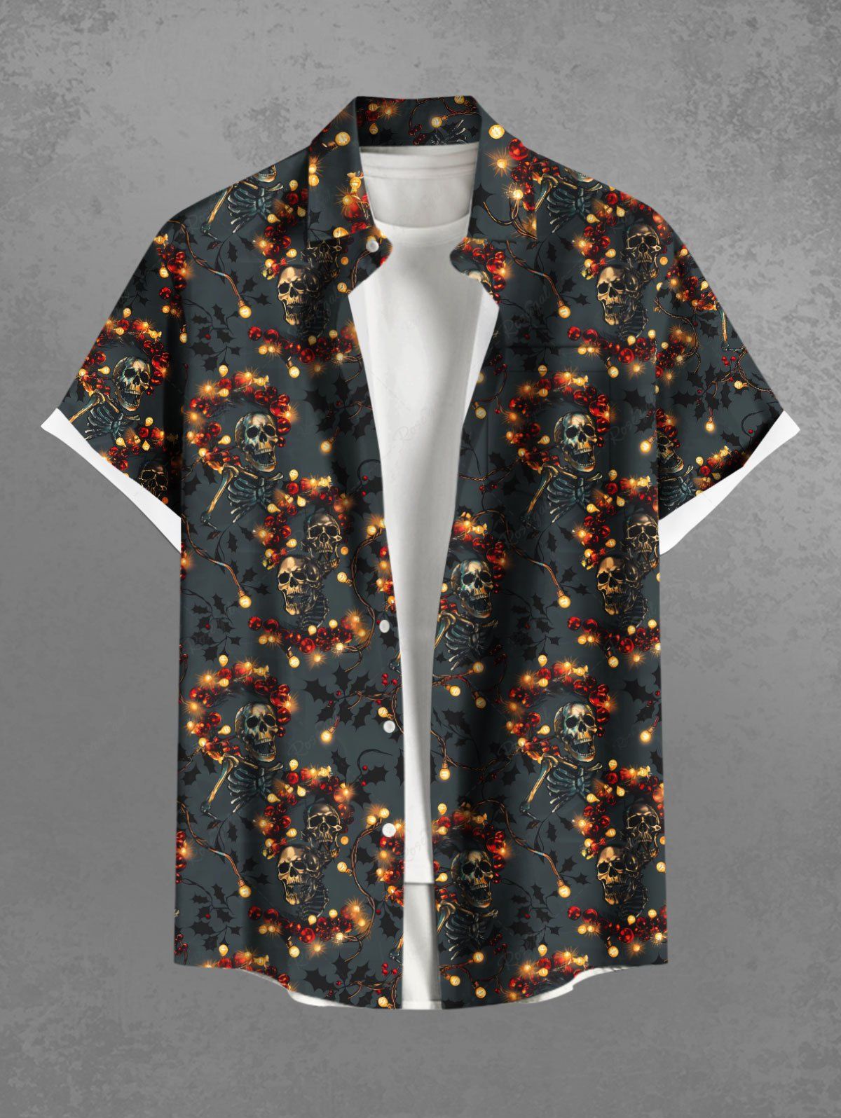 Gothic Plus Size Christmas Light Wreath Skull Skeleton Print Button Pocket Shirt For Men