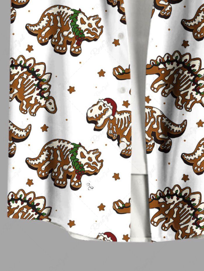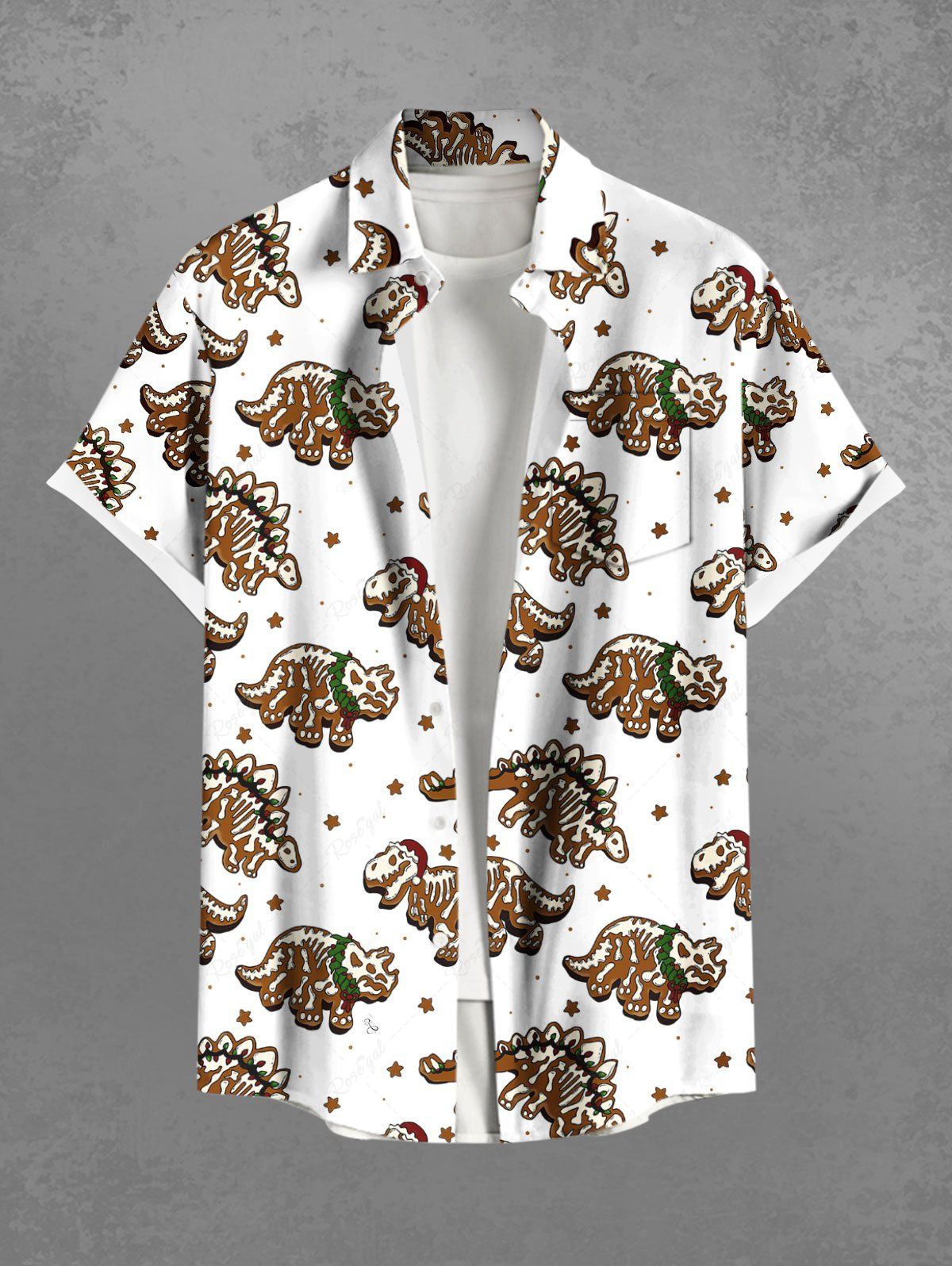 Gothic Plus Size Skeleton Dinosaur Star Print Button Pocket Shirt For Men