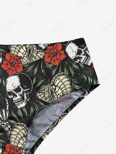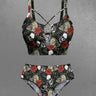 Gothic Skulls Skeleton Snake Tropical Leaves Floral Print Hawaii Lace Up Tankini Swimsuit