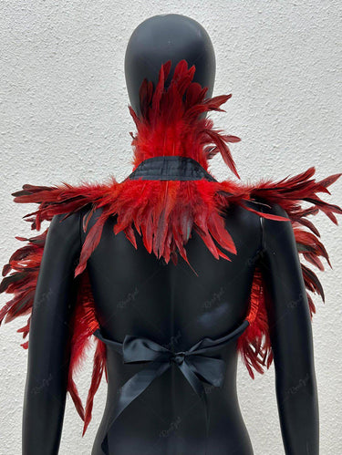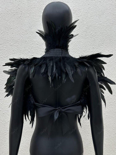 Halloween Gothic Feather Shrug Cape Back Tied Wrap