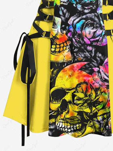 Colorful Tie Dye Ombre Skull Floral Print Lace Up A Line Tank Dress